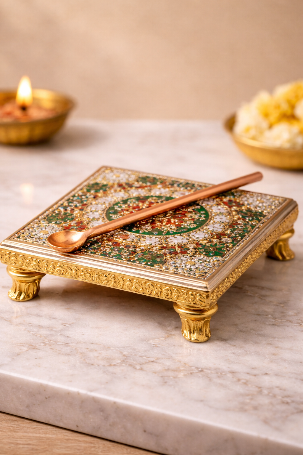 Sankalpa Spoon (Copper Ghee Spoon) Pure Copper • Controlled Pour • Intention-Focused The Sankalpa Spoon is used to offer ghee into the fire with precision and control. Its size and shape allow the right quantity of ghee to be offered calmly and safely. Copper is traditionally valued for ritual use due to its purity and conductivity, making it suitable for repeated daily offerings. This spoon is often purchased separately to: • replace worn spoons • keep multiple spoons for different rituals Key Details • Material: Copper • Length: Approx. 5.5 inches • Use: Controlled ghee offering • Easy grip, safe handling Ideal For Daily use • Replacement • Multiple Agnihotra practitioners
