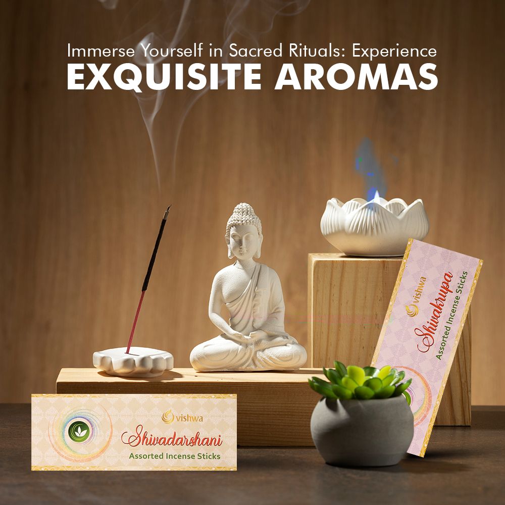 Assorted Incense Sticks Bundle – Shivadarshani + Shivakrupa Divine Duo • Ayurvedic • Vedic Aromatherapy Experience the harmony of divine awareness and grace with the Shivadarshani + Shivakrupa Assorted Incense Sticks Bundle. This thoughtfully curated bundle brings together two sacred aromatic blends designed to calm the mind, uplift the spirit, and purify your surroundings. Shivadarshani evokes inner stillness and spiritual clarity, while Shivakrupa invites peace, balance, and divine grace. Together, they create a complete aromatic experience suited for different moods, rituals, and moments of the day. Rooted in timeless Vedic wisdom and inspired by Agnihotra, Yoga, Ayurveda, Vastu, and Aromatherapy, both incense varieties are hand-blended using finest natural ingredients such as Agnihotra Ash, Ayurvedic healing herbs, frankincense, tree gums, sandalwood powder, and aromatic oils. This bundle is ideal for daily pooja, meditation, yoga, and creating a sacred ambience at home, offering a balanced blend of devotion, relaxation, and spiritual upliftment.