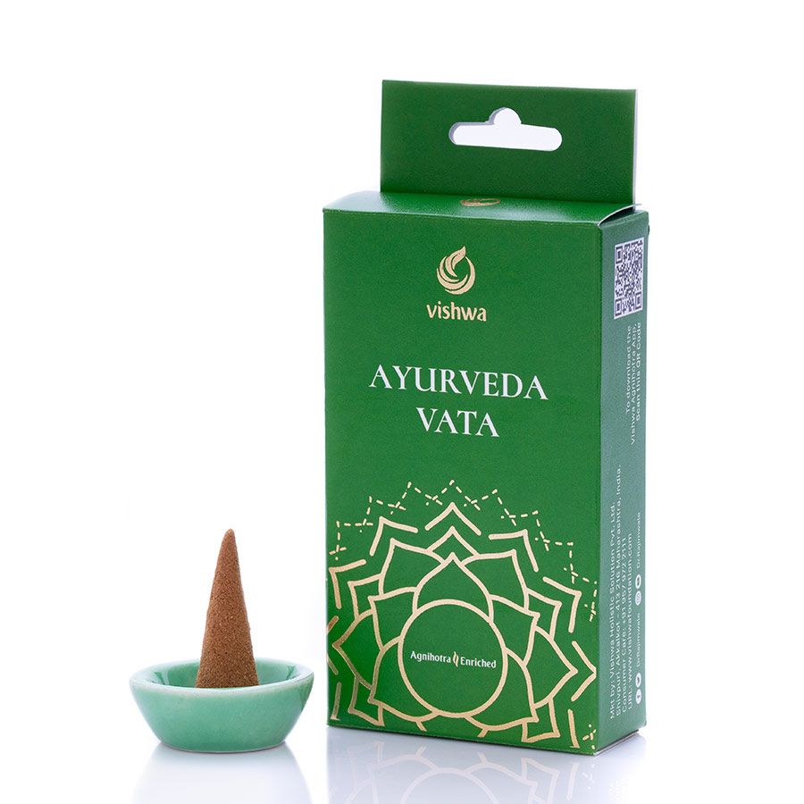 Calm • Grounding • Restful Balance Vishwa Ayurveda Incense Cones – Vata are thoughtfully crafted to calm and balance the Vata dosha using soothing Ayurvedic fragrance blends. Designed to ease restlessness and support grounding, these cones release a warm, comforting aroma that helps create a peaceful and restorative environment. Ideal for evening rituals, meditation, yoga, or moments of relaxation, Vata incense cones burn steadily and gently diffuse fragrance, making them perfect for winding down and reconnecting with inner calm.