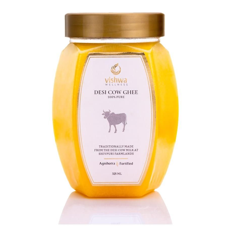 Vishwa Cow’s Pure Ghee (325 ml) is crafted from A2 milk of pure Indian-bred desi cows, lovingly raised in Vishwa Vedic Gaushalas and grazing on Agnihotra-farmed lands. Prepared using traditional slow-processing methods, this ghee retains its natural purity, aroma, and medicinal qualities. It is uniquely fortified with the subtle medicinal energy of Agnihotra Ash, making it ideal for daily Agnihotra offerings and sacred rituals. Agnihotra is performed regularly in our gaushalas, creating a calm and harmonious environment for the cattle. This positive atmosphere supports higher serotonin levels in the milk, enhancing its nutritional richness and vitality. Ghee is a core offering in Agnihotra, sustaining the sacred fire and supporting the transformative effects of the ritual—reduced stress, mental clarity, improved health, increased energy, and a heart and mind filled with love. The 325 ml size is perfectly suited for individual practitioners, small families, beginners, or regular daily use.