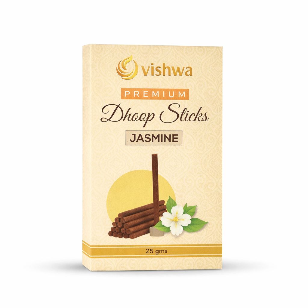 Dhoop Sticks – Jasmine are aromatic incense sticks infused with the sweet, floral essence of jasmine flowers. When lit, they release a soothing and refreshing fragrance that helps calm the mind, uplift the mood, and create a peaceful atmosphere. Jasmine dhoop sticks are ideal for daily pooja, meditation, relaxation, and spiritual rituals. Their pleasant aroma helps reduce stress, promote positivity, and enhance devotion, making them perfect for homes, temples, and meditation spaces.