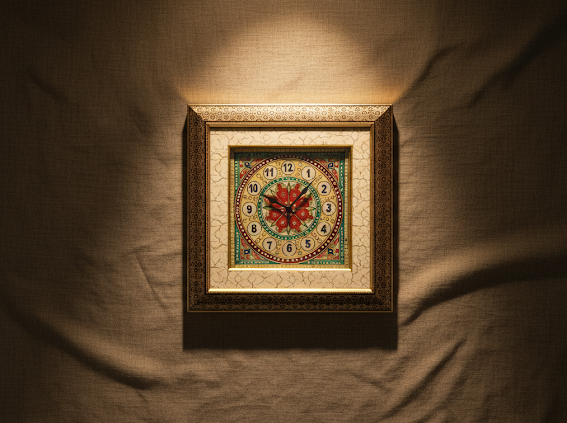 Harmony • Elegance • Timeless Tradition This handcrafted marble wall clock adorned with delicate floral Meenakari patterns brings the charm of Rajasthani artistry into everyday living. The floral motifs symbolise freshness, balance, and continuity, making timekeeping a graceful and visually soothing experience. Why this piece is special The floral Meenakari design softens the movement of time with artistic stillness, creating harmony and warmth in both traditional and contemporary interiors.