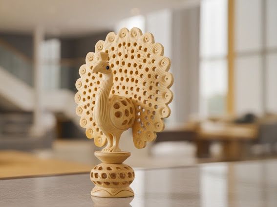Joy • Beauty • Creative Expression The peacock is associated with joy, confidence, and divine grace. This wooden sculpture brings colour and celebration in a grounded form.