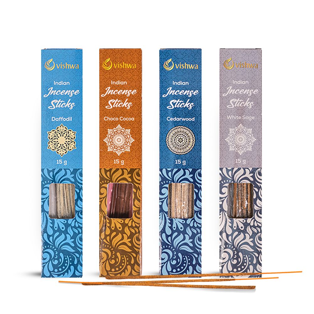 Mid-Range Incense Sticks Bundle – French Fragrances Modern Elegance • Soft Luxury • Mood-Enhancing Aromas (Daffodil + Choco Cocoa + White Sage + Cedarwood) Indulge in a refined European fragrance experience with the French Fragrances Mid-Range Incense Sticks Bundle. This elegant collection blends floral freshness, gentle sweetness, cleansing herbs, and woody depth, creating a balanced and uplifting atmosphere for modern living spaces. The bright floral notes of Daffodil bring freshness and optimism, Choco Cocoa adds a warm, comforting sweetness, White Sage purifies and refreshes the air, while Cedarwood grounds the senses with a soft, woody calm. Together, these aromas create a luxurious yet soothing ambience, perfect for relaxation, focus, and everyday wellness. Crafted using carefully selected natural ingredients, these incense sticks are hand-blended to deliver a smooth burn, consistent fragrance, and clean aroma. Ideal for those who enjoy contemporary scents with a spiritual calm, inspired by aromatherapy traditions.