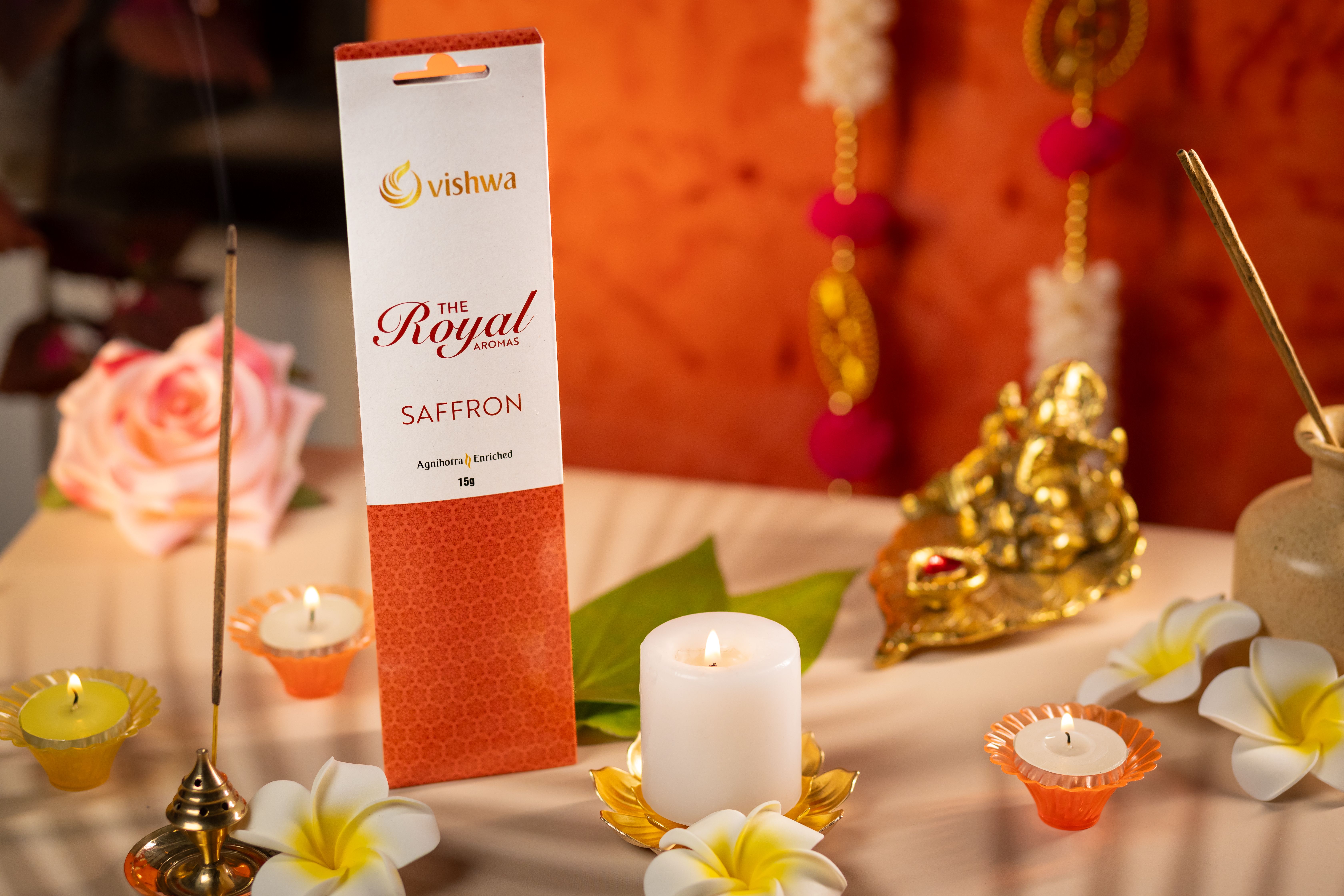 Premium Incense Sticks – Saffron Royal Aroma • Warm • Uplifting Experience the luxurious and uplifting fragrance of Saffron, traditionally associated with purity, positivity, and sacred rituals. These premium incense sticks fill your space with a warm, slightly sweet aroma that enhances focus, devotion, and inner balance—ideal for pooja, meditation, and refined living. Prepared with high-quality aromatic ingredients, they burn smoothly and release a long-lasting, elegant fragrance that elevates the atmosphere.