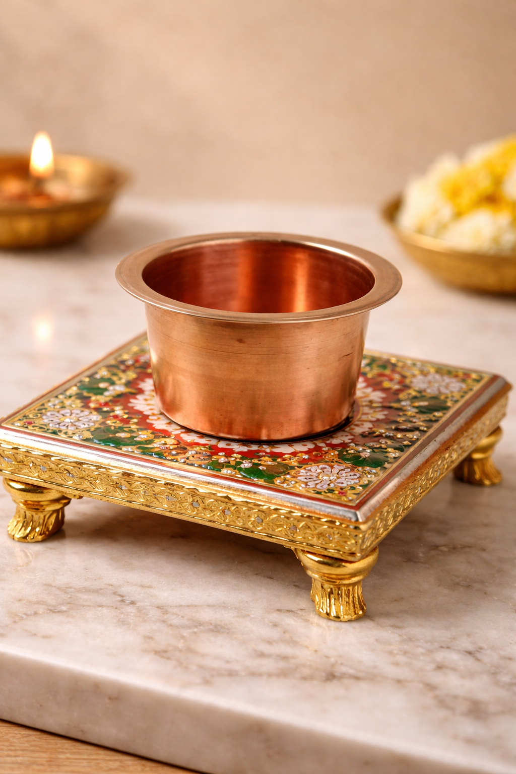 99.99% Pure Copper • Shivpuri Crafted • Ritual Use The Vishwa Agnihotra Copper Cup is crafted from 99.99% pure copper and manufactured at our in-house facility in Shivpuri, ensuring purity, consistency, and ritual integrity. Designed for sacred use, this copper cup is ideal for holding ghee, water, or ritual liquids during Agnihotra and other Vedic practices. Copper is traditionally valued for its purity and energetic conductivity, making this cup suitable for daily, long-term use. Its simple, balanced form supports clean handling, ease of use, and disciplined ritual practice, whether used individually or as part of a complete Agnihotra setup.
